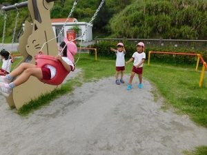 ぶらんこを1人でこぐことが難しいと「押そうね!!」と言って優しく手伝ってくれるお友だちも![]()