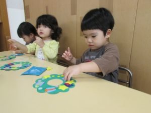 指先に糊を付けて、ぺったんぺったん貼っていきました👉