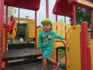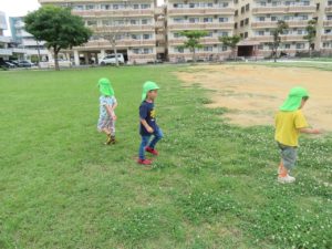 広場では、ちょうちょうを見つけて追いかけ、