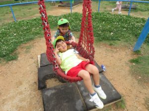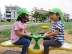 お友だちを押してあげて、仲良く遊んでいます✨