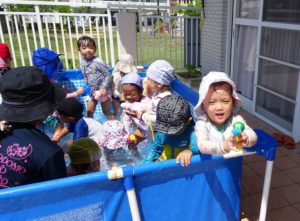 7月になり、子ども達が大好きな水遊びが始まりました~🌈