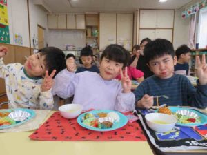 本日、輝組のお友達は「卒園祝いお祝いランチ」でとっても豪華🤩