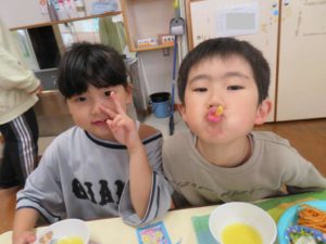 自分の名前・好きな食べ物は「いちご🍓」と上手に答えていましたよ👏