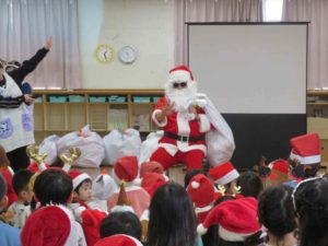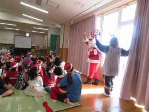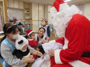 子ども達は、サンタさんの登場に大喜び♬
