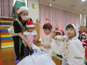 さっそく、各クラスの代表のお友達がサンタさんからプレゼントをもらいました!