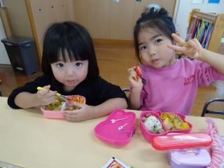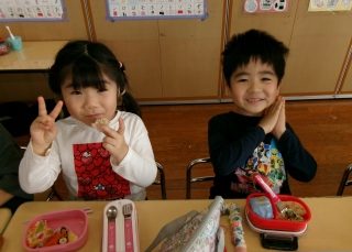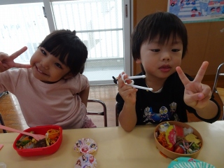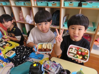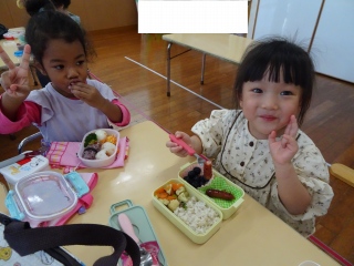 お弁当を見せ合ったり、「美味しい~」と幸せそうに食べて、大喜びの子ども達でした( *´艸`)