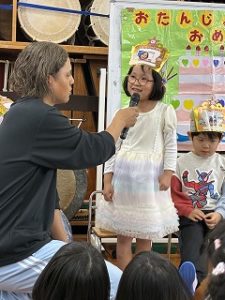 誕生児のお友達はインタビュー🎤しっかり答える事ができていました🎵
