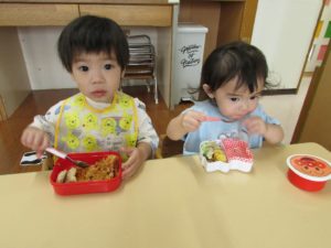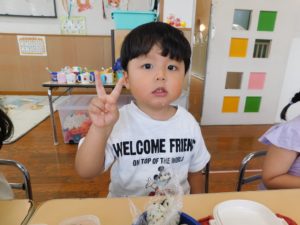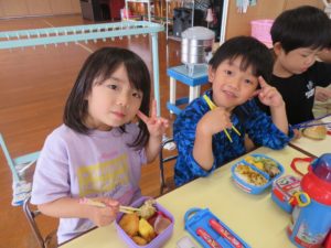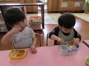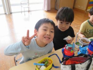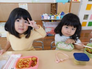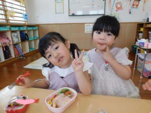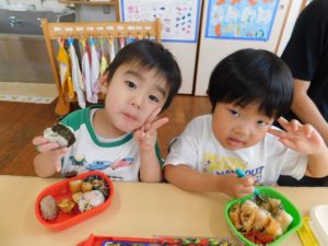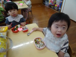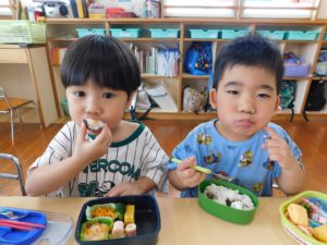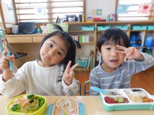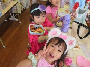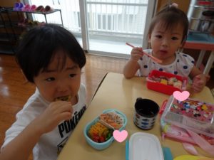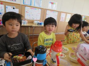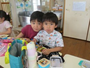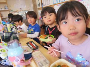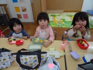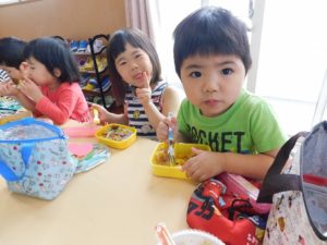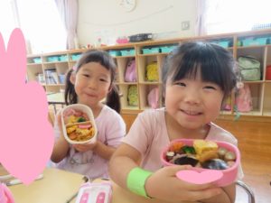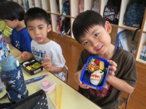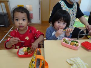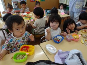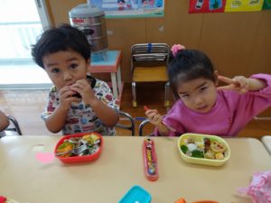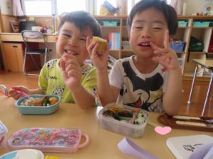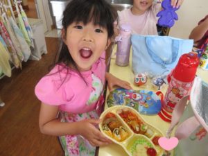 楽しい誕生会の後は、みんなお待ちかねの愛情たっぷりお弁当🍱です(*^-^*)🌟