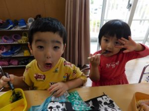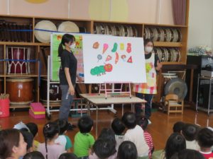 大好きなはらぺこあおむしの歌が流れると楽しそうに一緒に歌っている子もいましたよ(^_-)-☆⭐