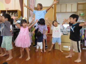 ダンスでは、たくさんのお友達が前に出てきて、