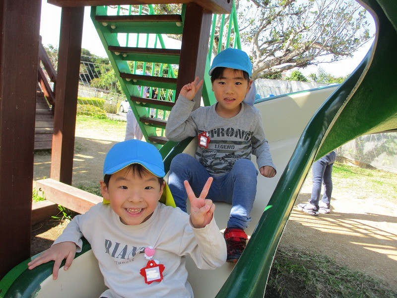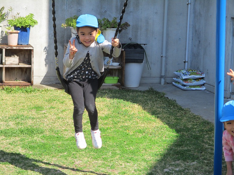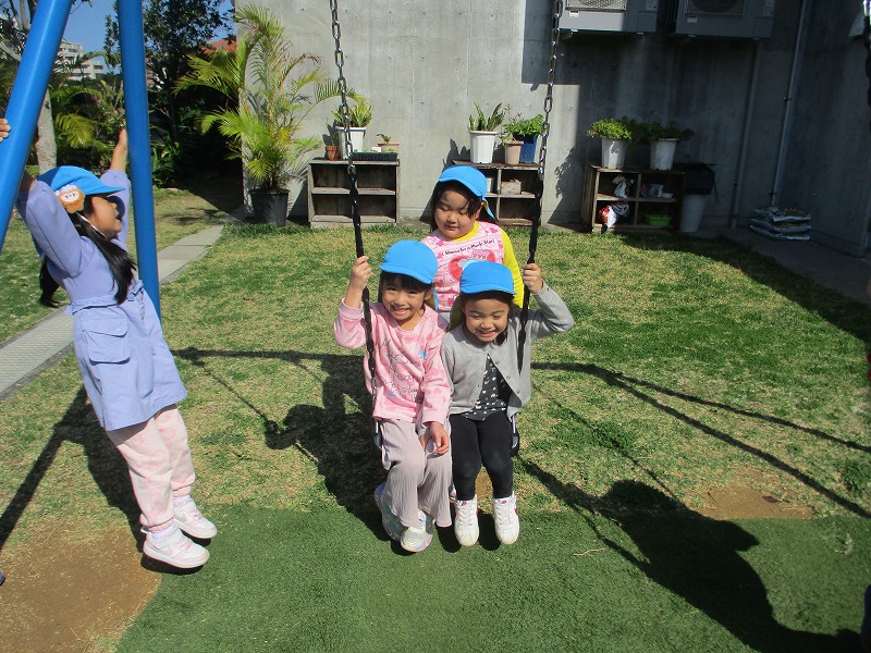 まつり組は玄関前園庭で遊びました😊