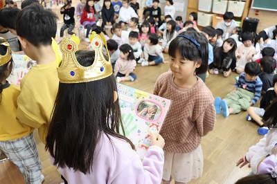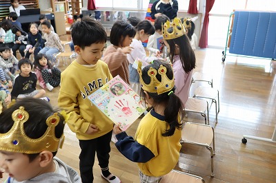 お祝いされるお友だちはちょっぴり緊張しながらも・・