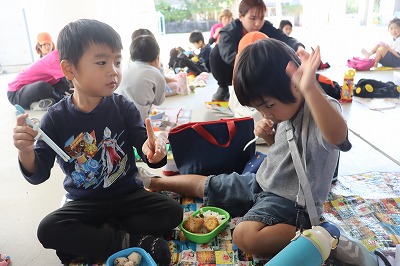 「くれよんのくろくん」や「ブレーメンの音楽隊」の劇を見て