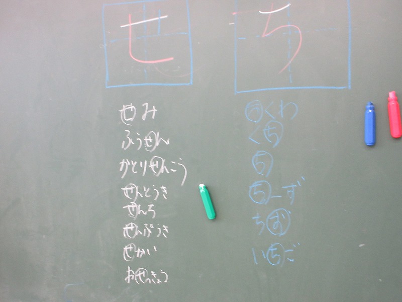 「ち」「せ」「そ」「れ」のつく言葉を探し、書く練習をしました