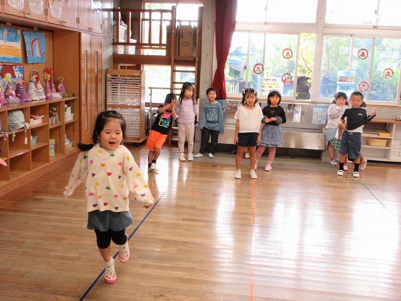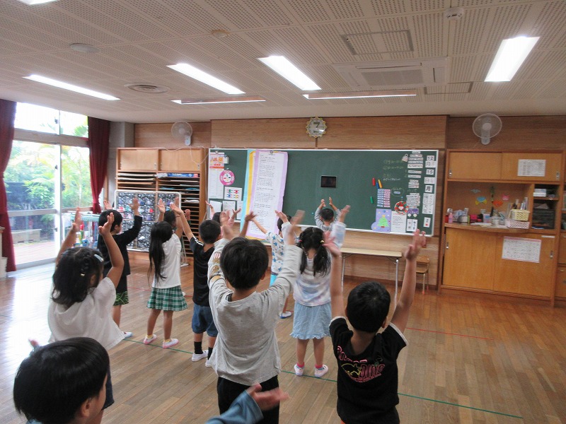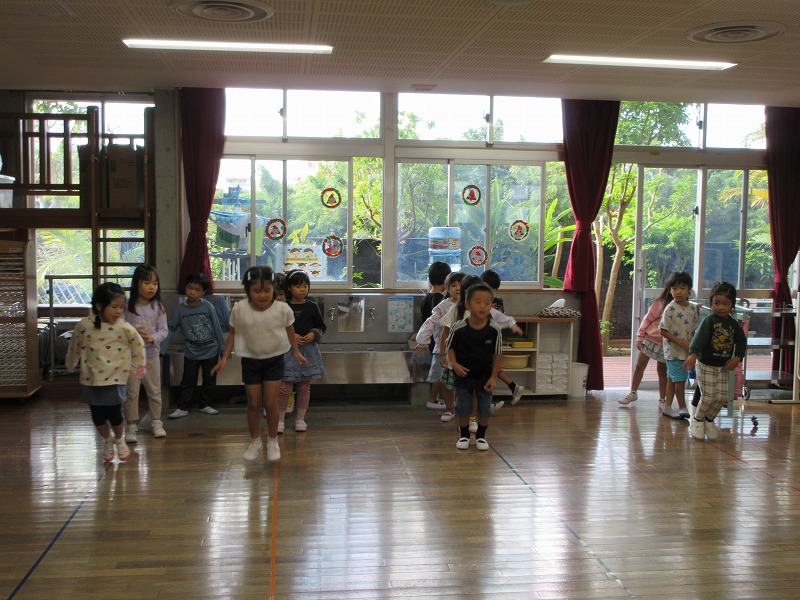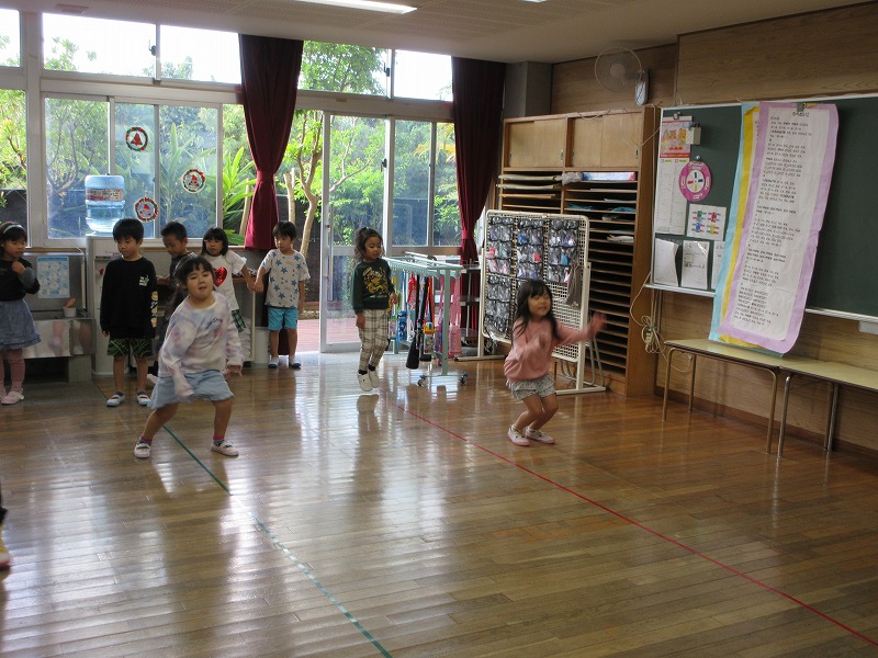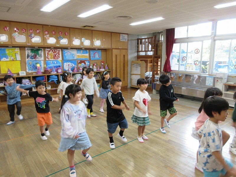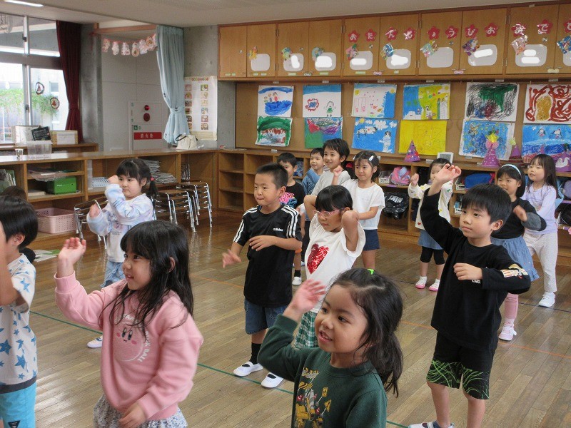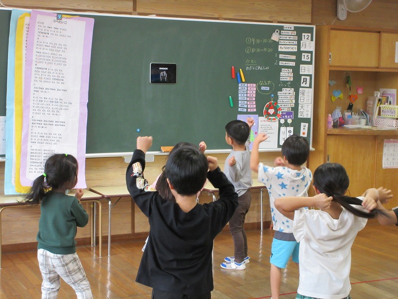 たくさんリズムに合わせて体を動かし「たのし~い」😊の声と「も一回やりたい」