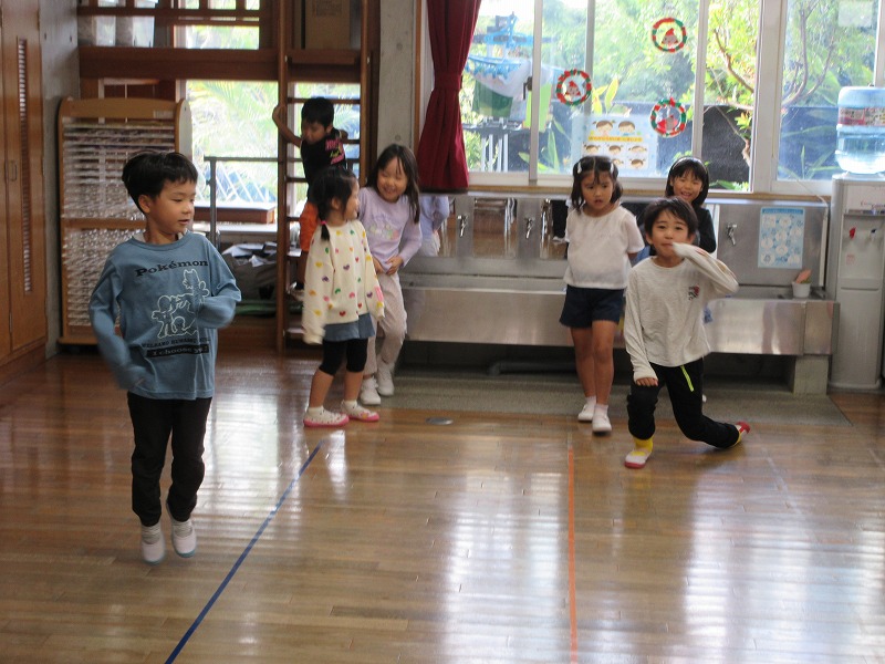 YouTubeを見ながら真似してリズムに合わせて体を動かしました。