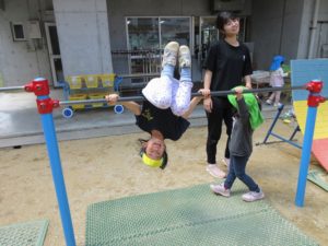 ボール・鉄棒・砂遊び・雲梯と体を動かし楽しんでます♪