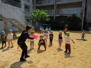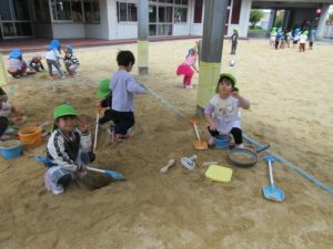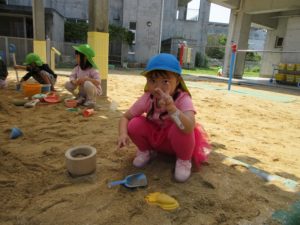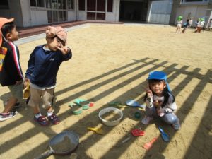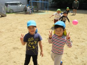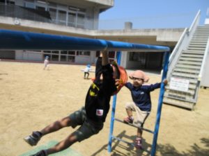 前園庭では…