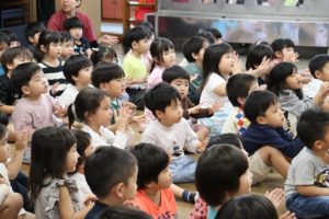 みんなで、こいのぼりの由来を紙芝居で聞いたり、こどもの日に何を食べるのかを話しました♪