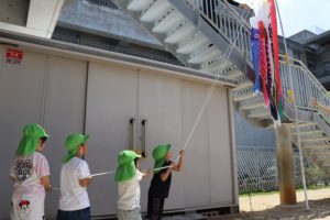 5歳児の代表がこいのぼりを空高く揚げました😊