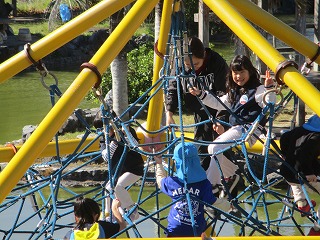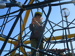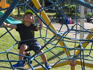 公園に到着すると、少し変わったジャングルジムに上ったり、