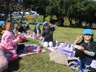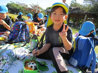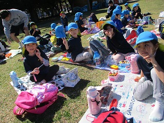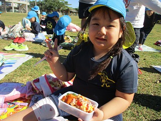 沢山体を動かし、お弁当タイムの時には、「お腹すいた~」という声が多数あり、