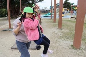 公園に行く前のバスでは、まだ着かないの~?と公園で遊ぶ事を楽しみにしている様子が見られましたよ~