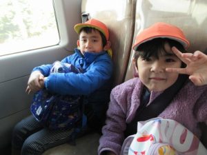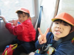 バスの中ではウキウキな子ども達🩷