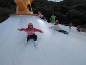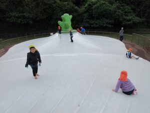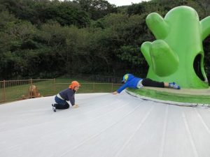 巨大トランポリンがツルツル滑り