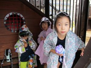 雨の園外保育でしたが、子ども達は大満足!!「雨の日も楽しいね」とお話していましたよ。来月は晴れますように・・。