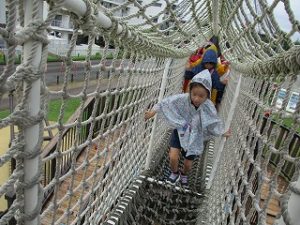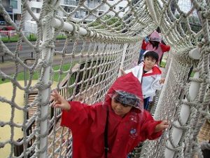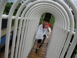 「5分くらい雨宿りしてバスに戻る前に、遊具を少しだけ探索しました。」