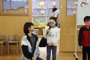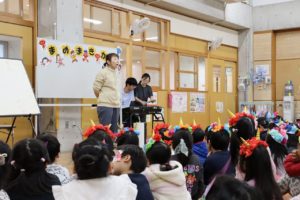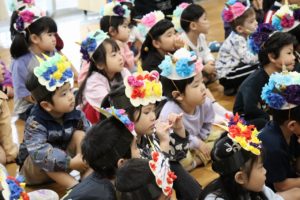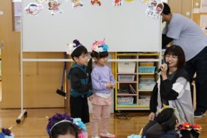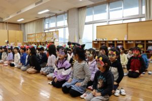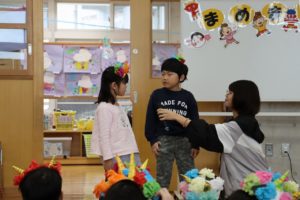 たたずまいした後は、皆で豆まきのお話を聞いたり、