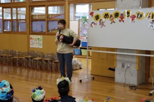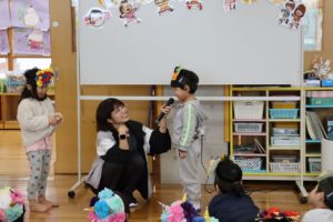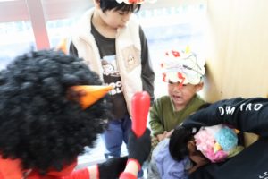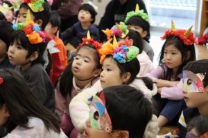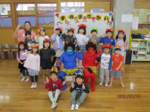 オニの登場に少し怖がる様子もありましたが、真剣にお話を見ている子ども達でしたよ~。