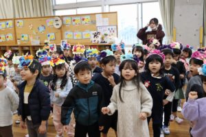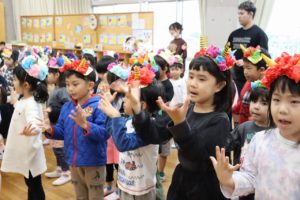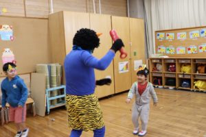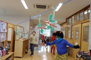 豆まきが始める前には、元気いっぱいに『鬼のパンツ』を歌って踊って準備はバッチリ✨