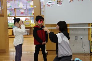 皆で豆まきの歌を歌った後は、皆のかわいい・カッコイイお面を披露してもらいました(´▽`*)