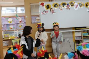 恵方巻の話やおにの苦手なヒイラギイワシの話にも興味津々に聞いてます