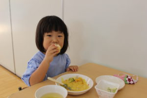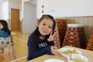 午前中、園庭でたっぷり体を動かしたのでお腹ぺこぺこ!(^^)!