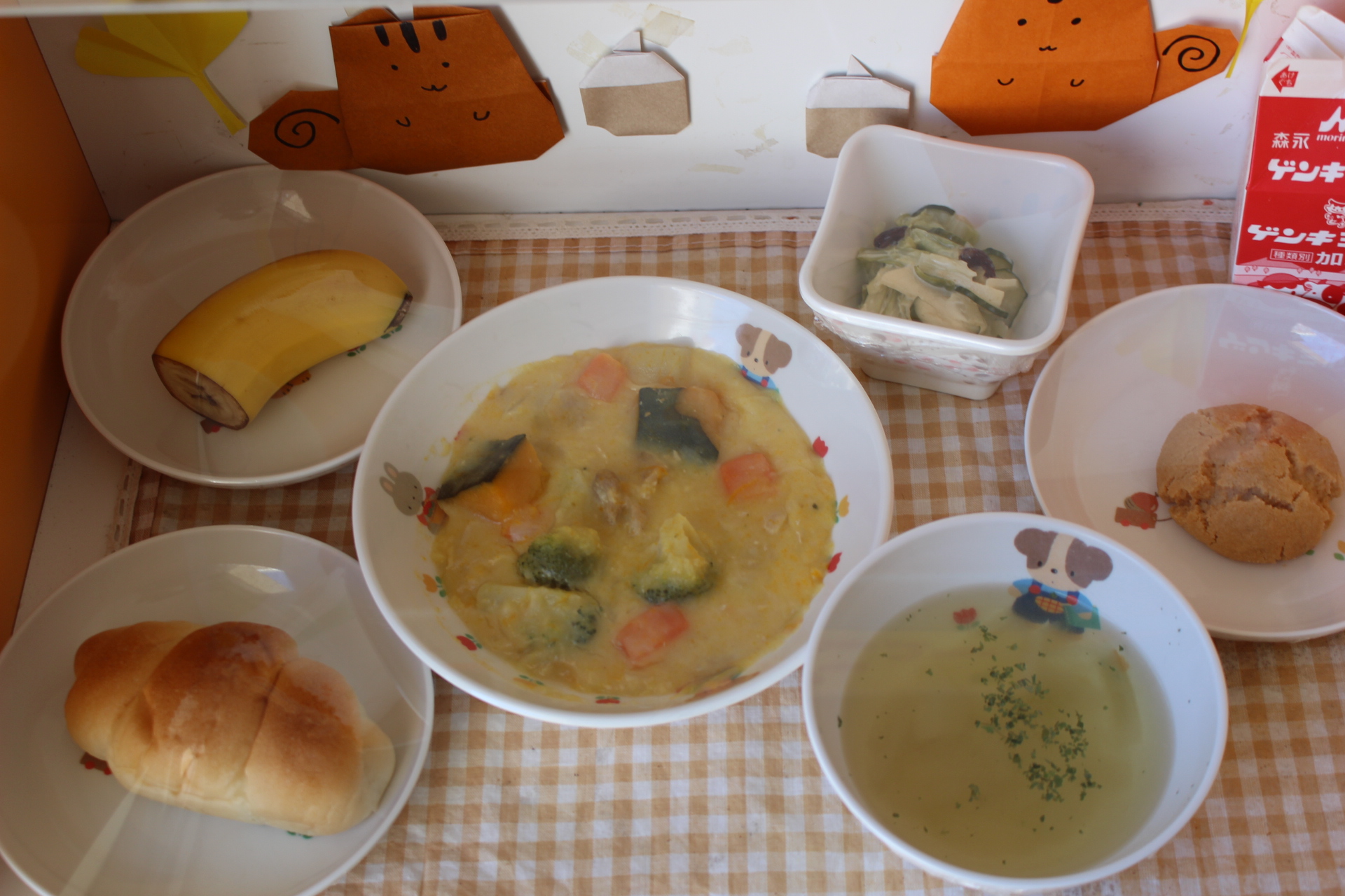 ☆ロールパン ☆パンプキンシチュー ☆コンソメスープ ☆コールスロー ☆バナナ