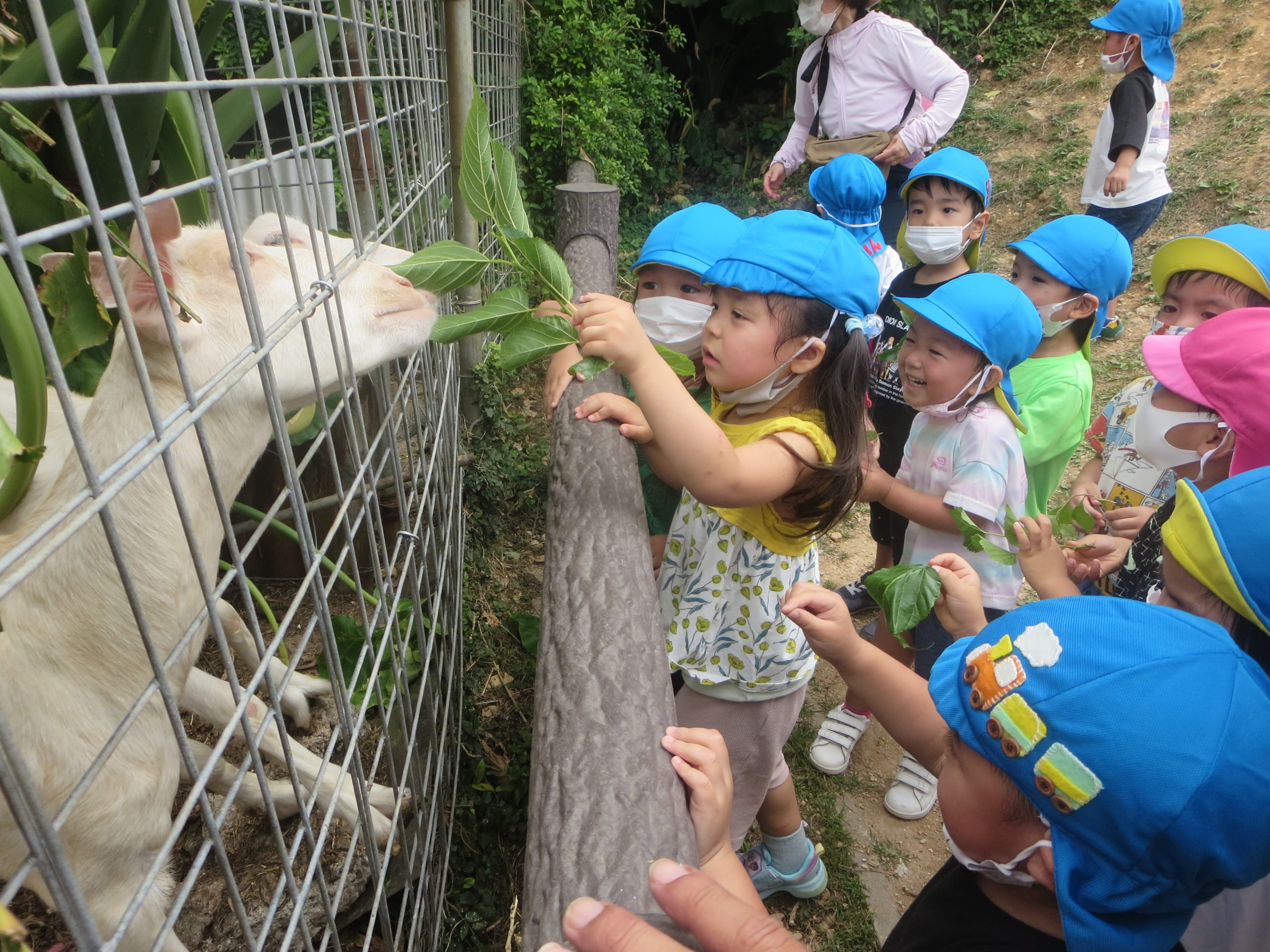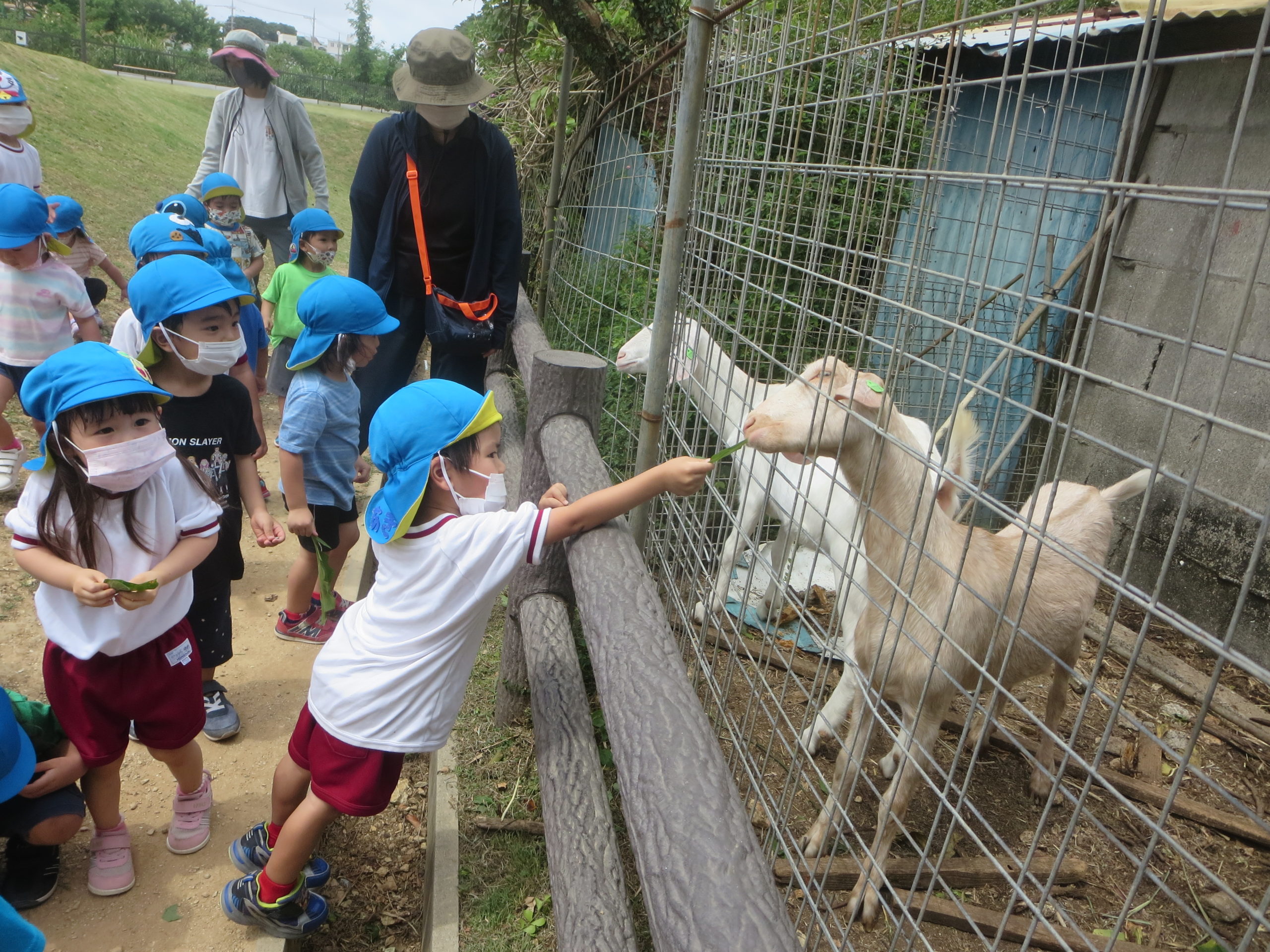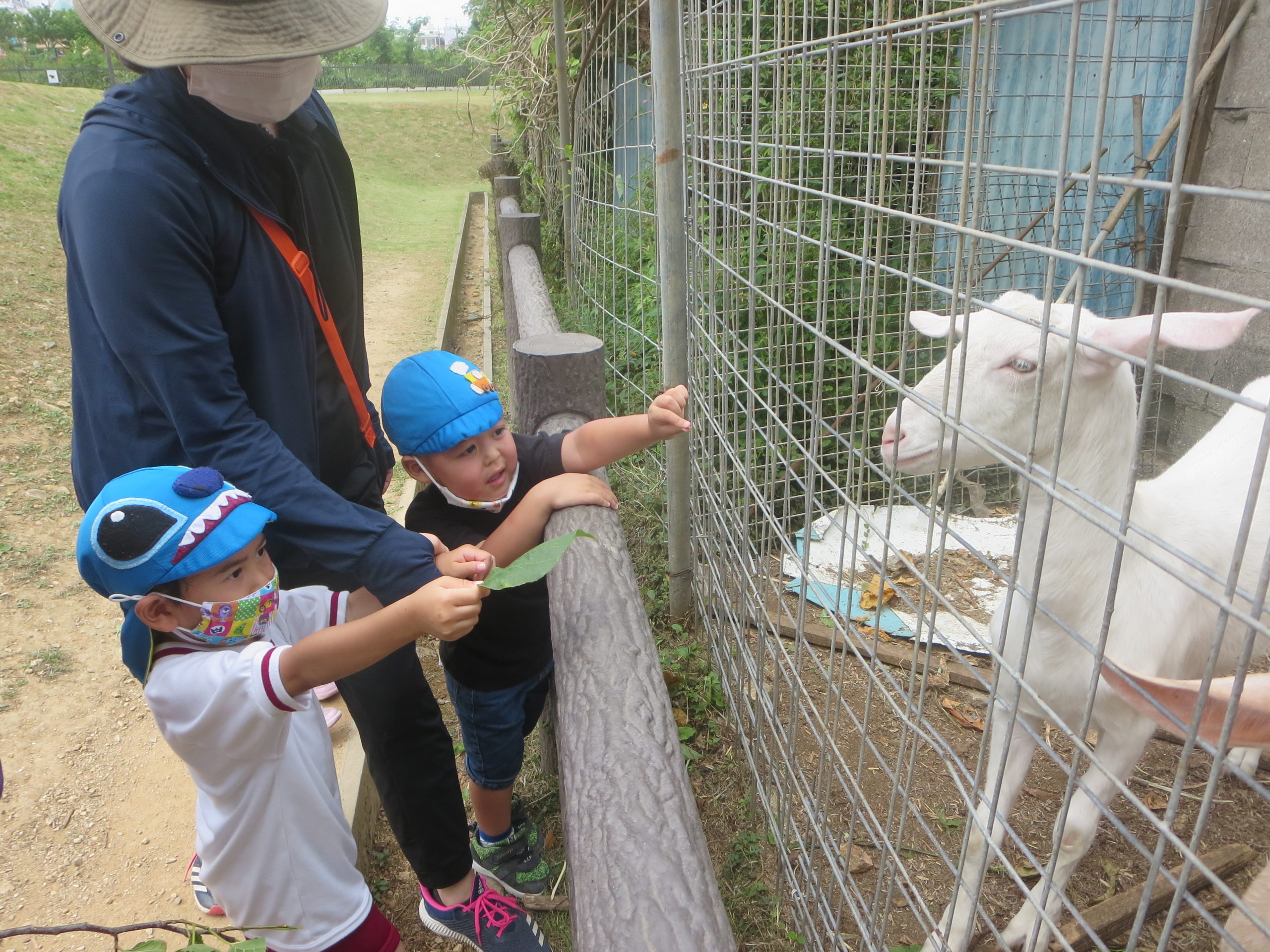 比屋良川公園にはヤギ🐐がいます(*^-^*) 美味しそうに葉を食べてくれました。