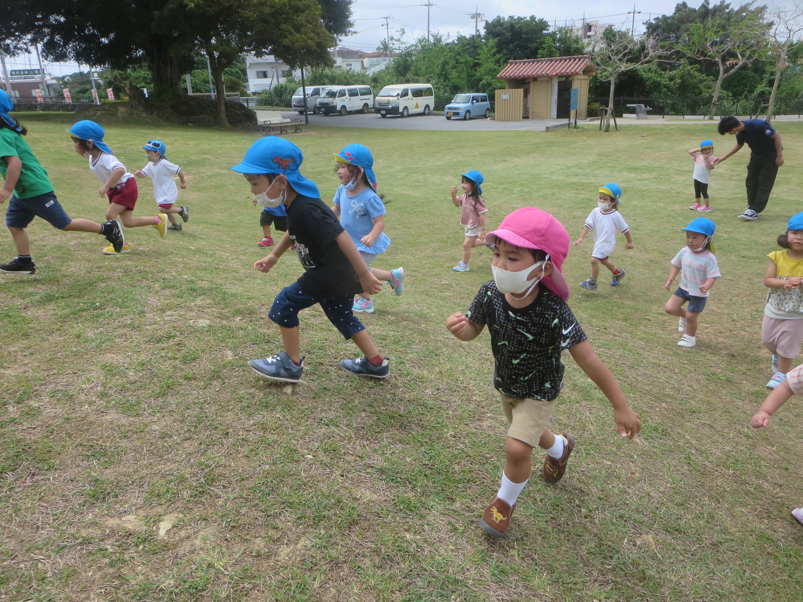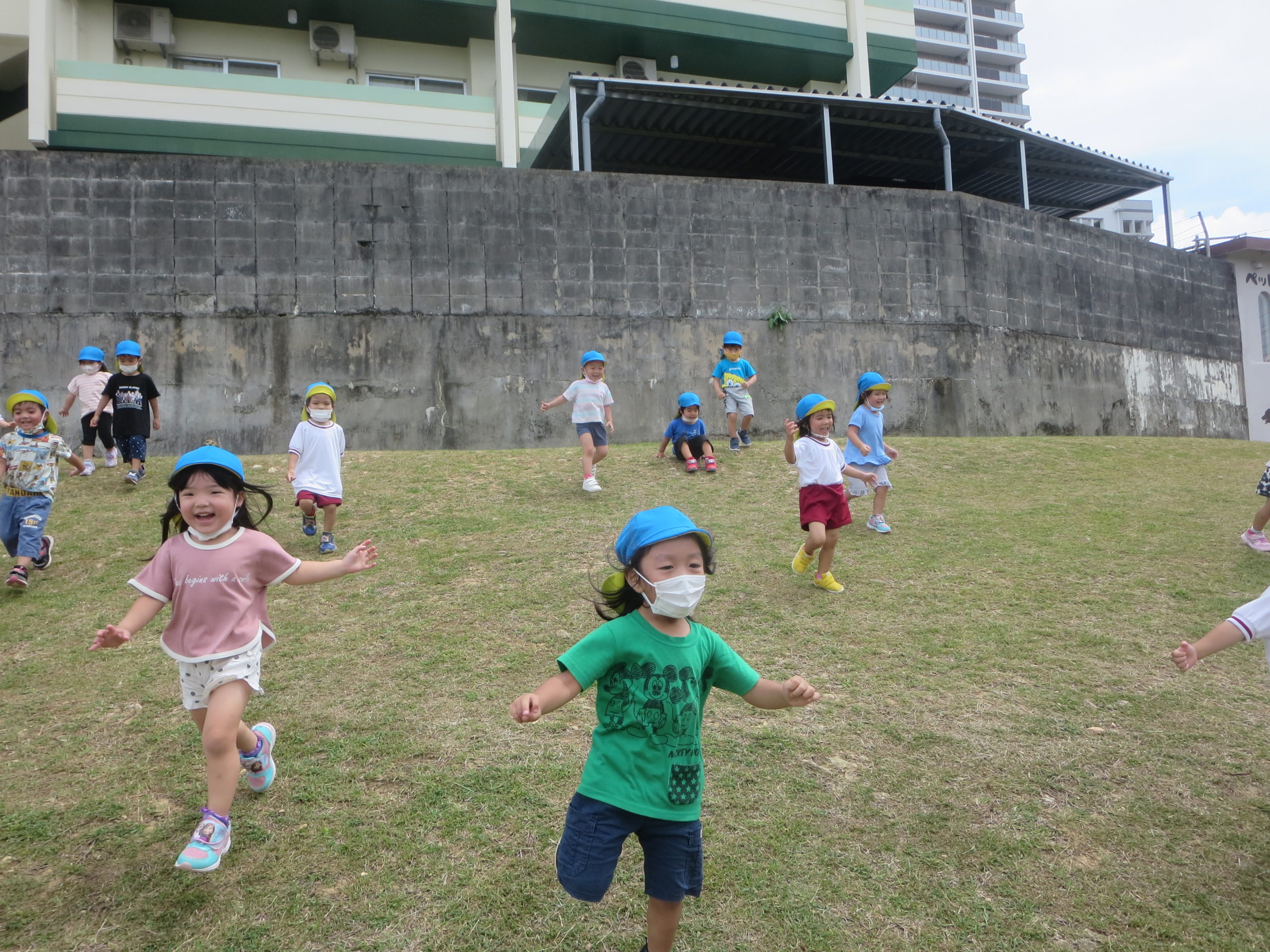 広い芝生で鬼ごっこ👹