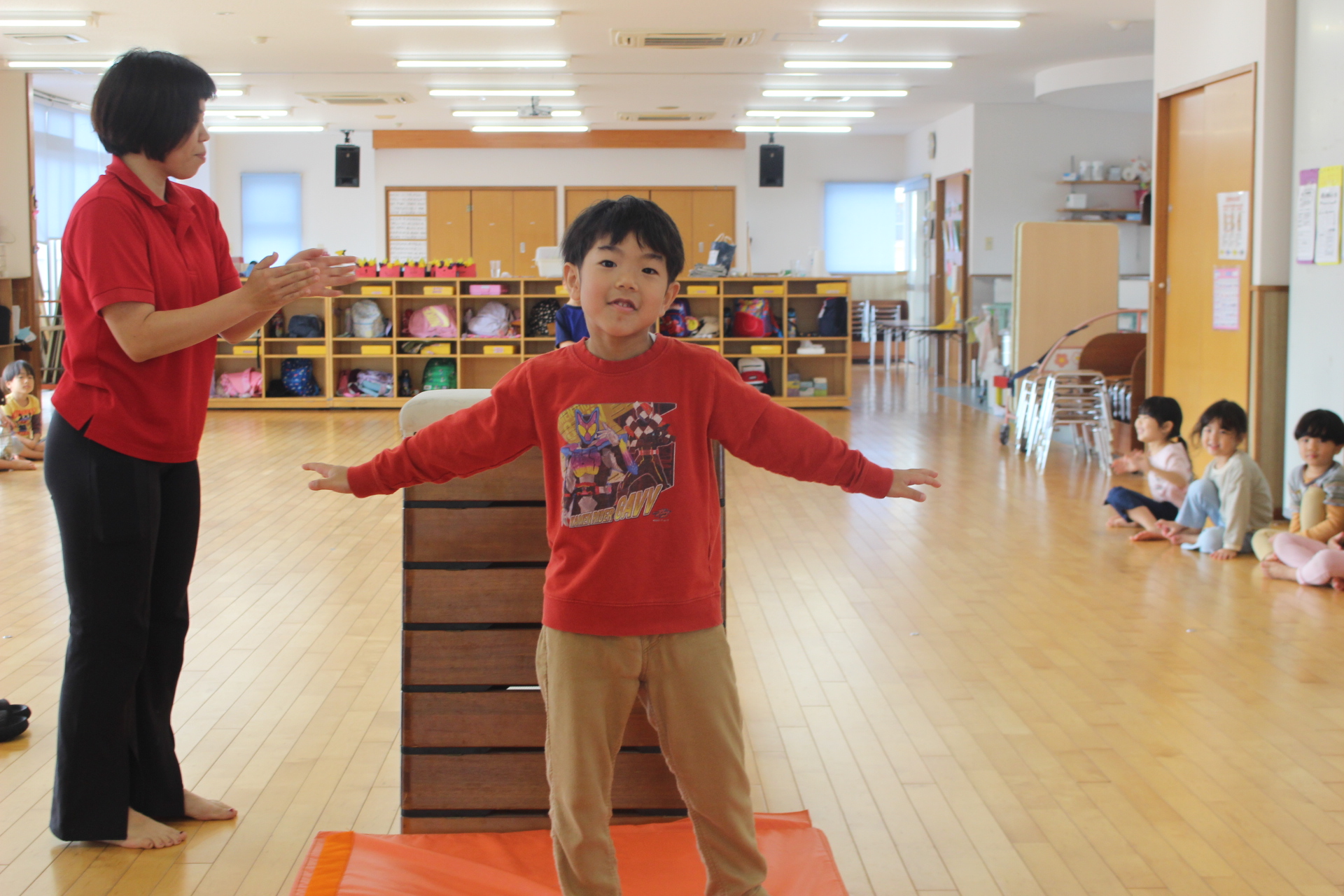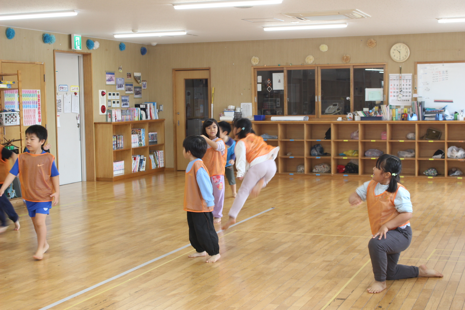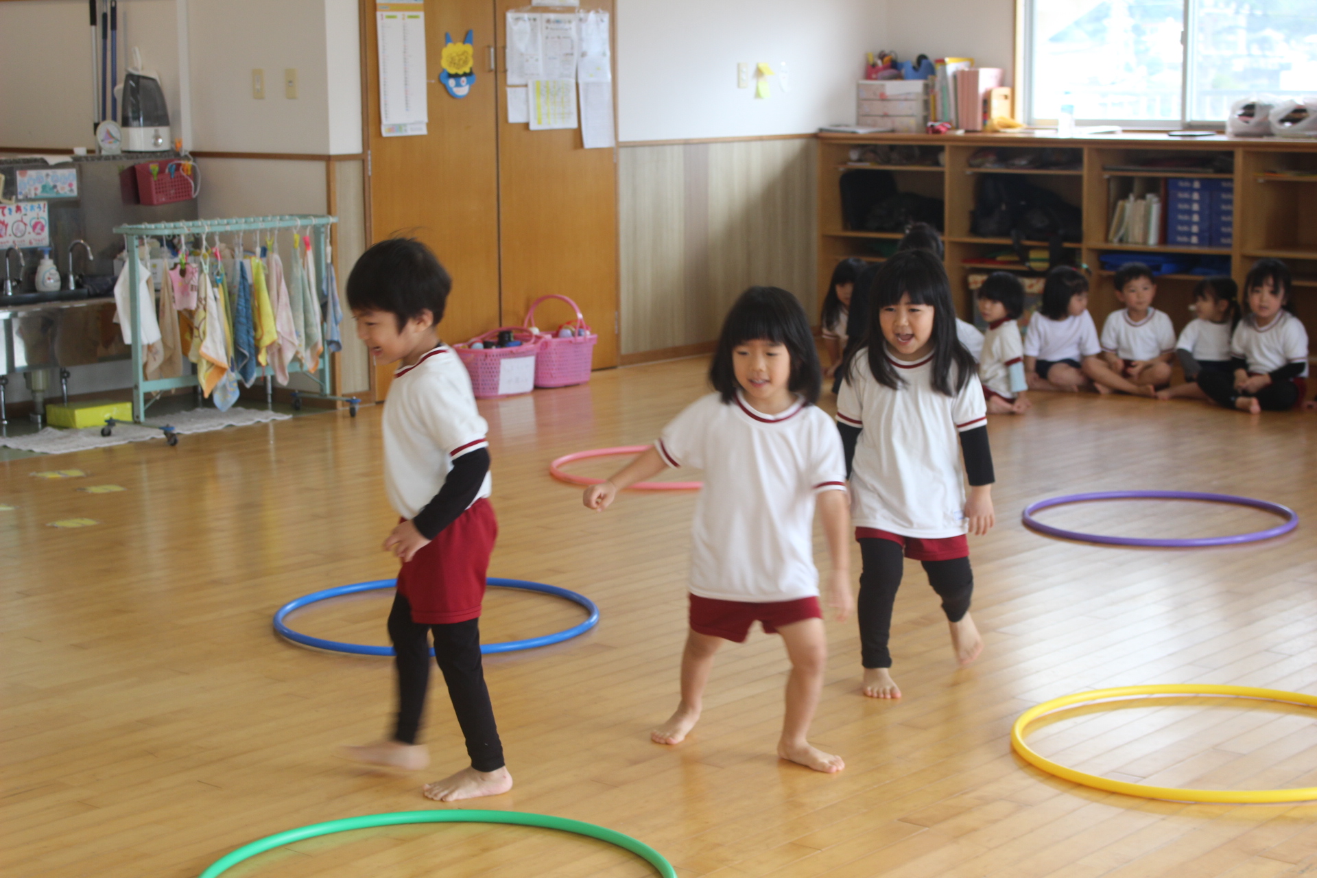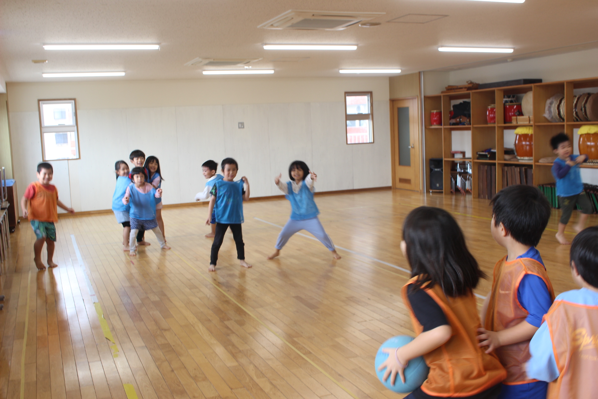 でも、広い保育室でゲームをしながら身体を動かしました。