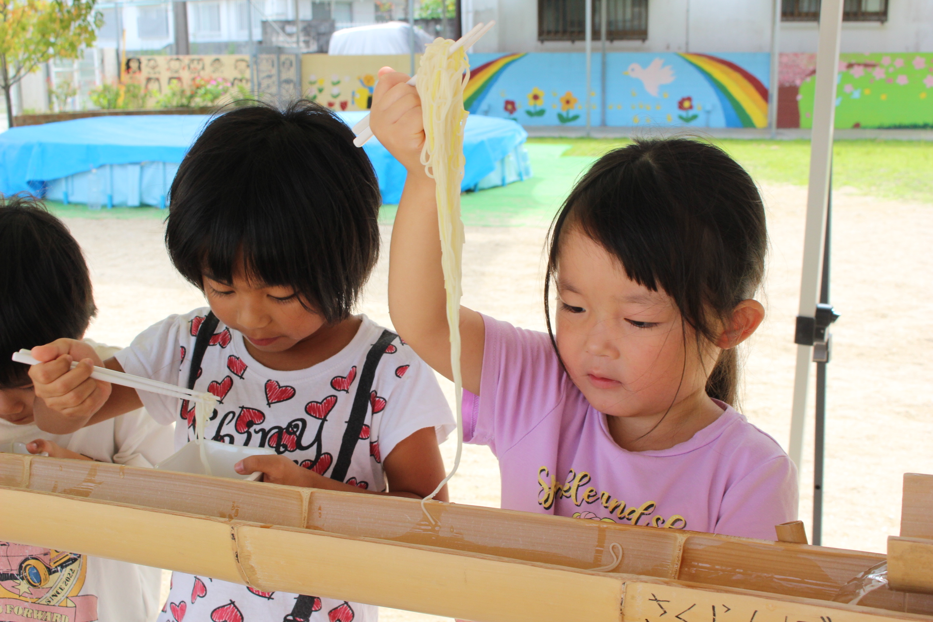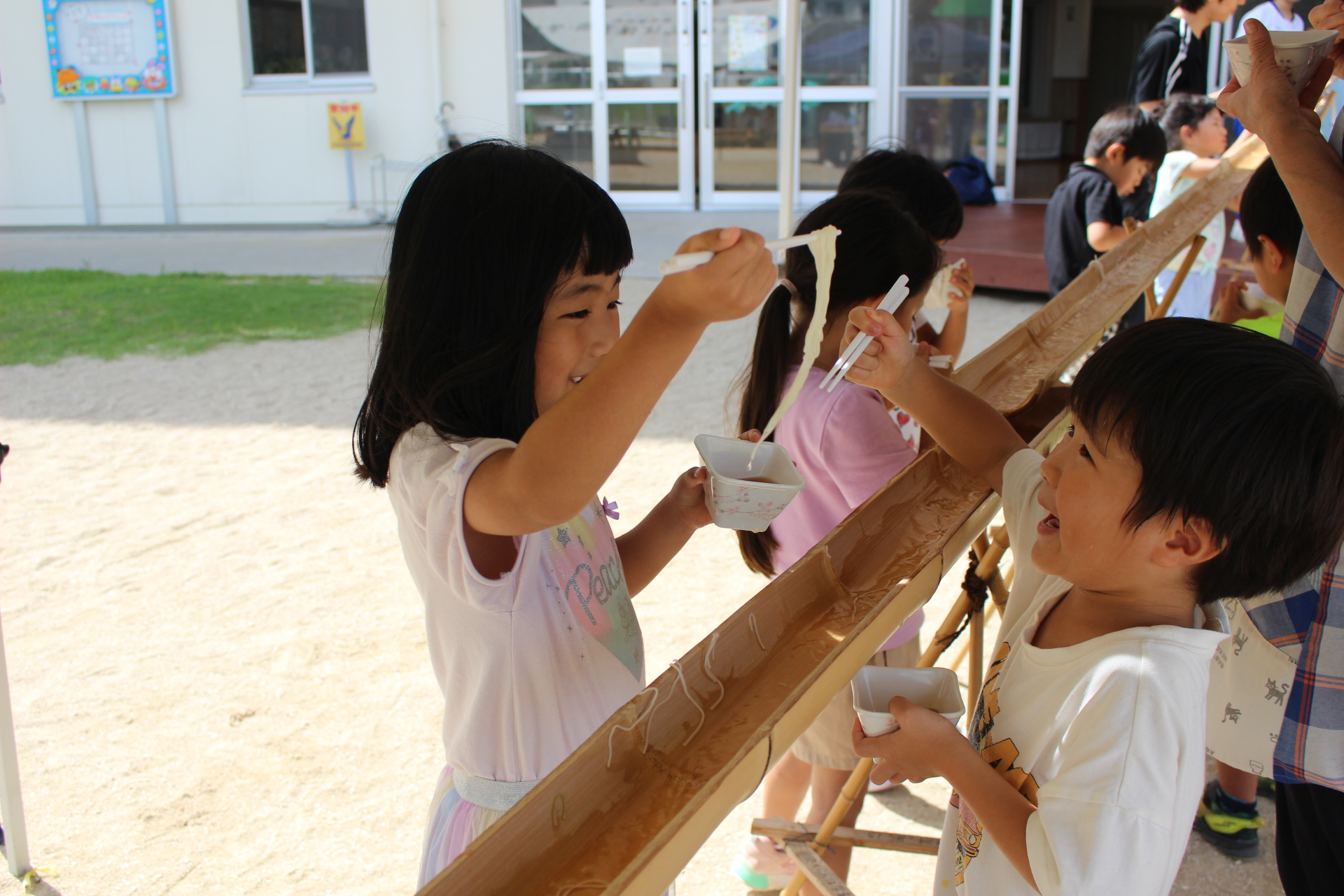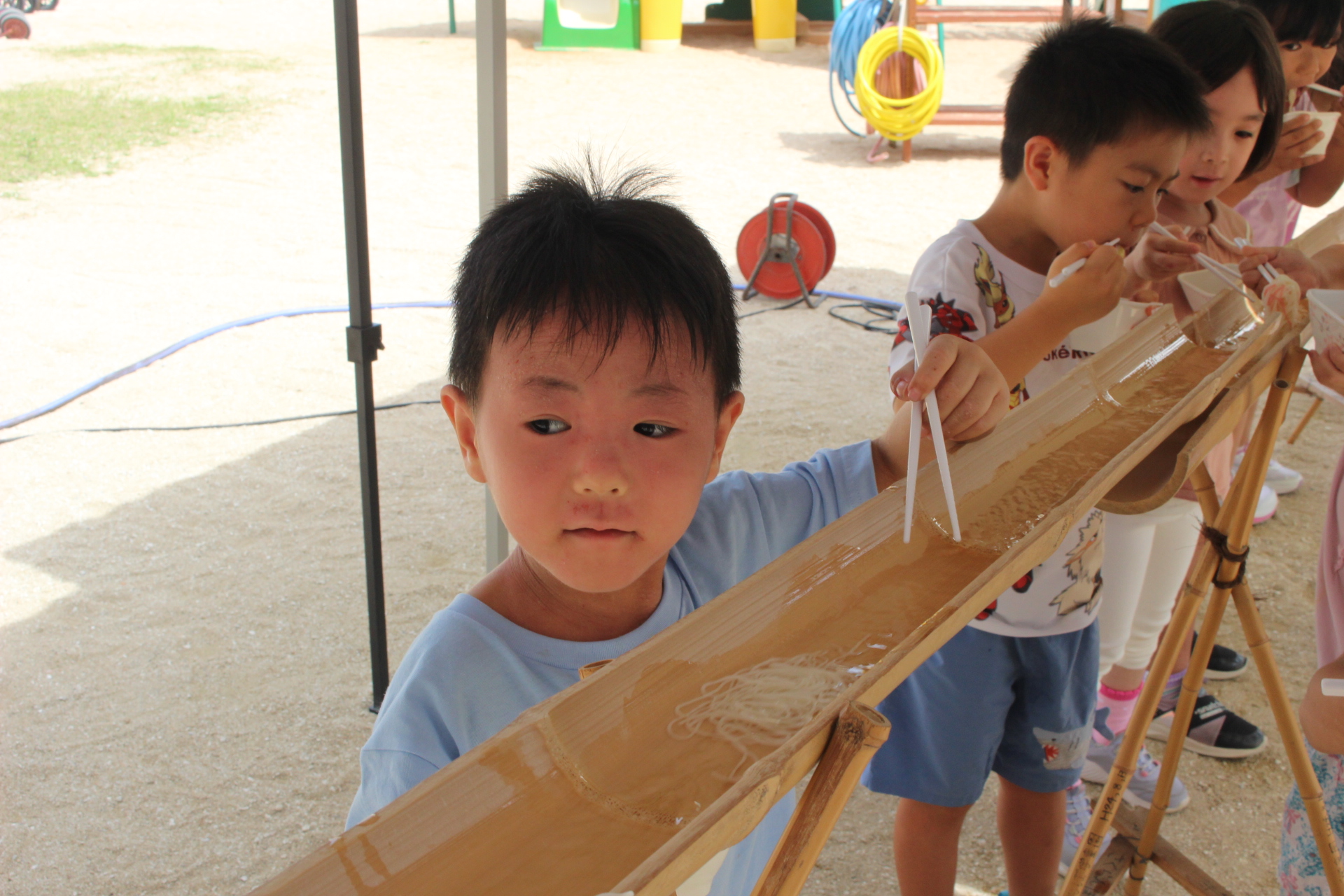流れてくる素麺に気持ち高めの子ども達!!美味しくたべました(*^^*)