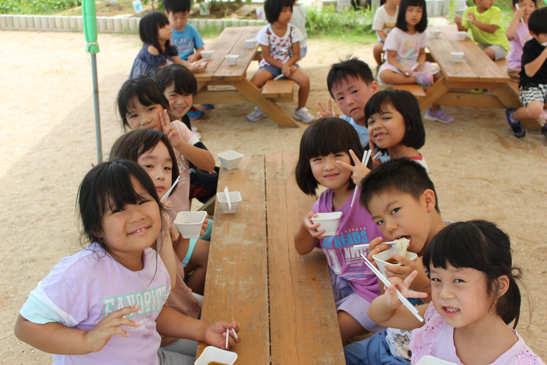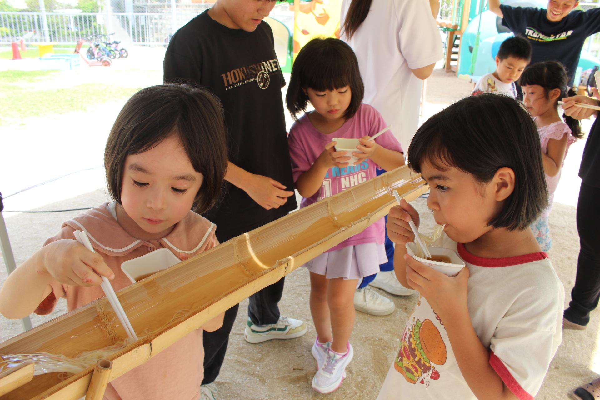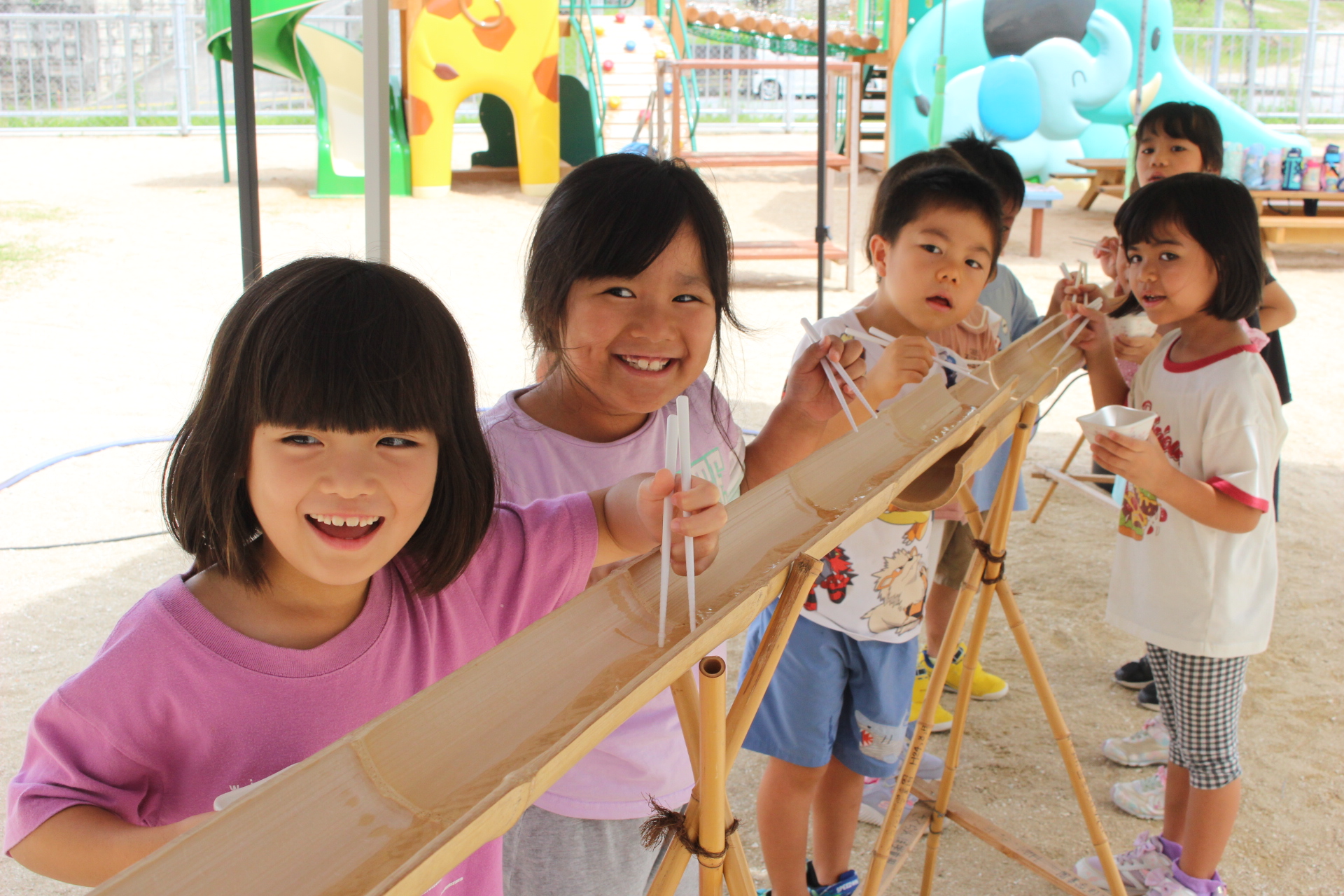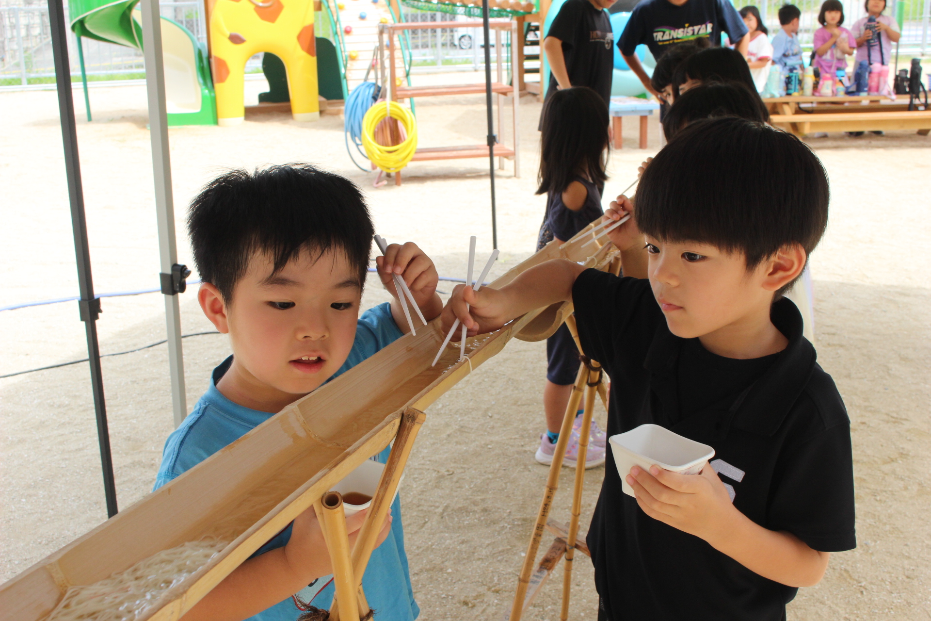 流れてくる素麺に気持ち高めの子ども達!!美味しくたべました(*^^*)