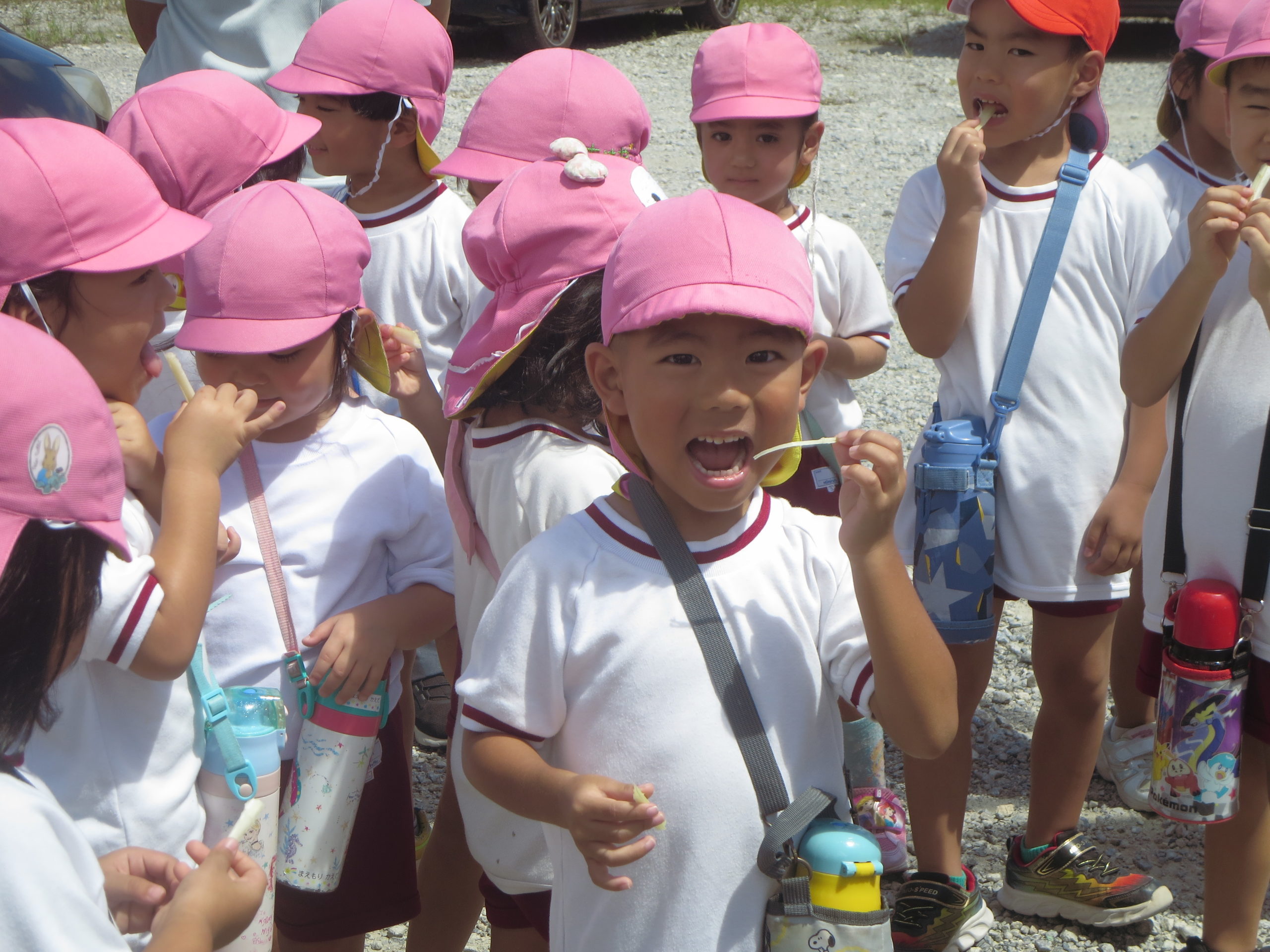 サトウキビをかじったら、甘い汁が・・・煮詰めると黒糖になるんだよ!