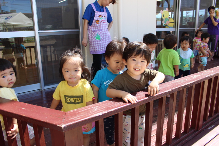 お兄ちゃん、お姉ちゃん達の元気な声に小さいお友だちは部屋から出てきました。
