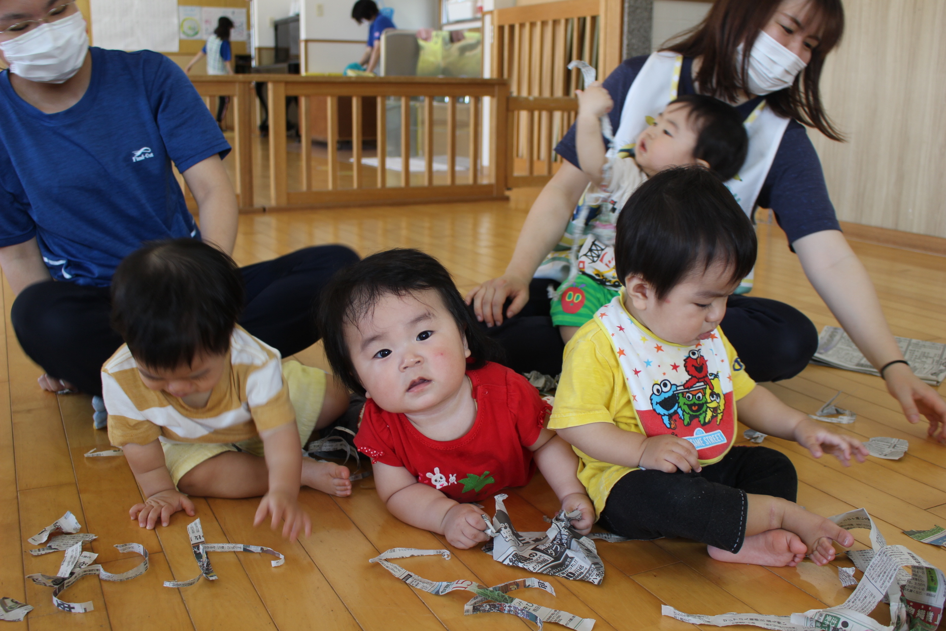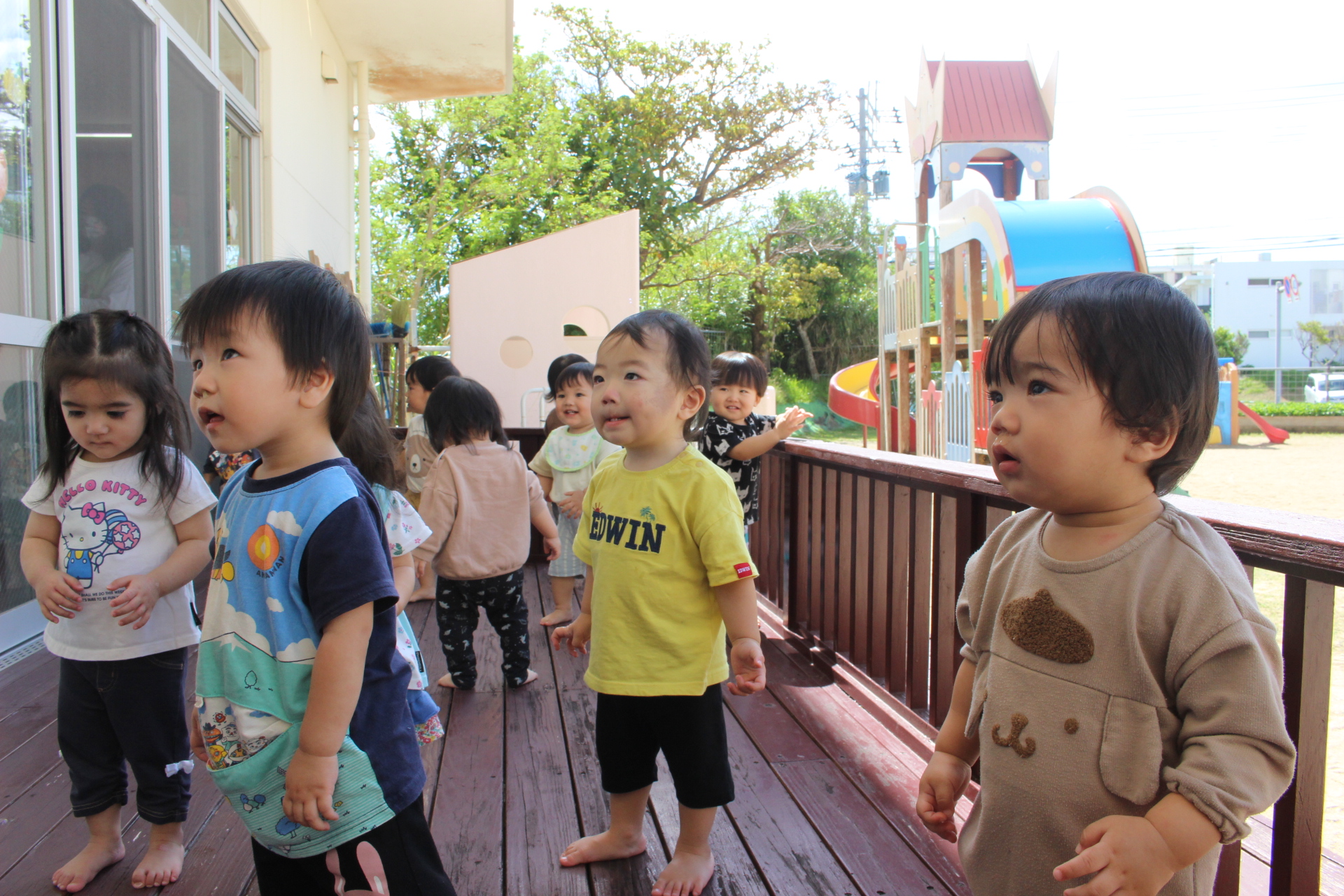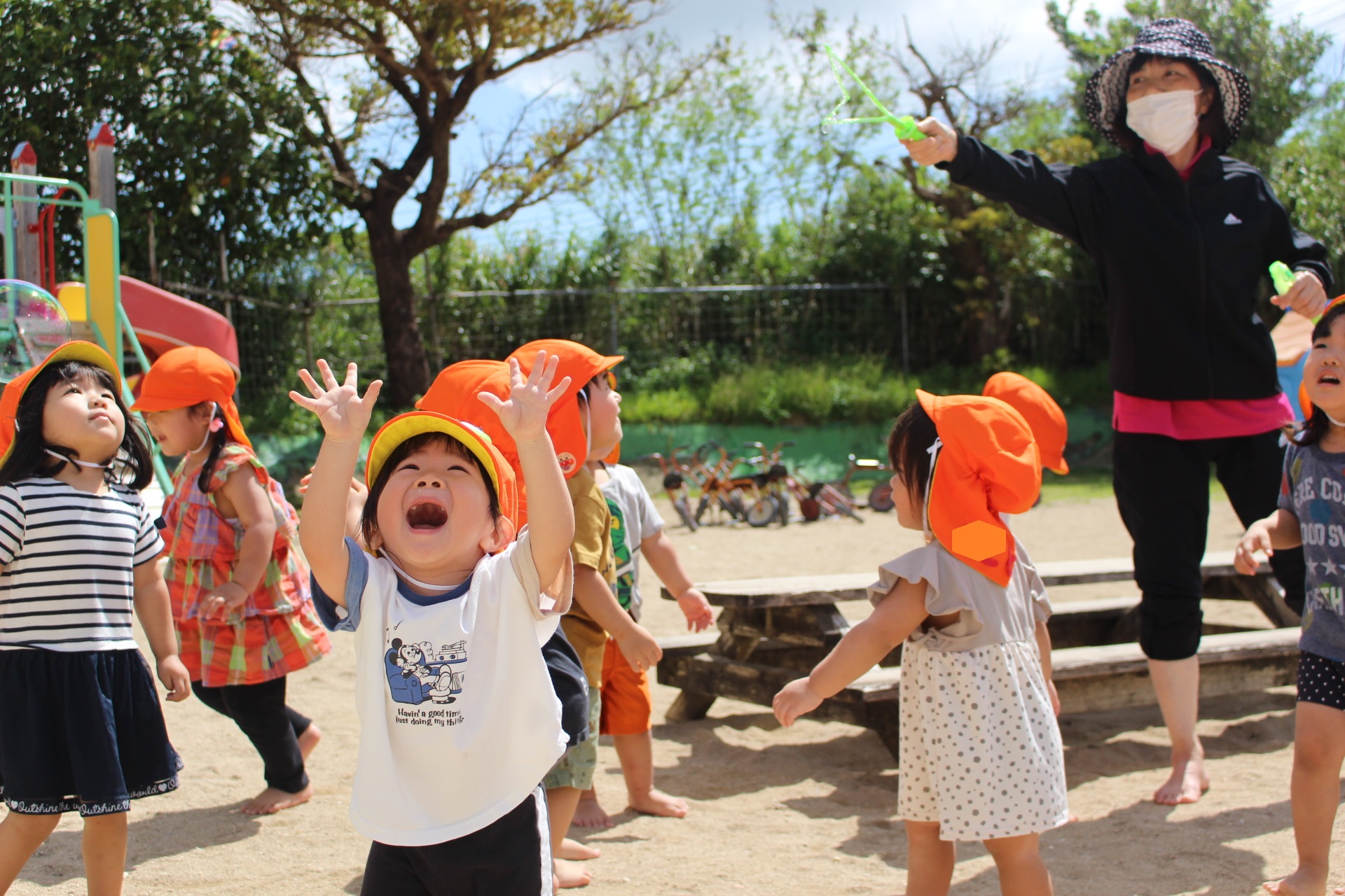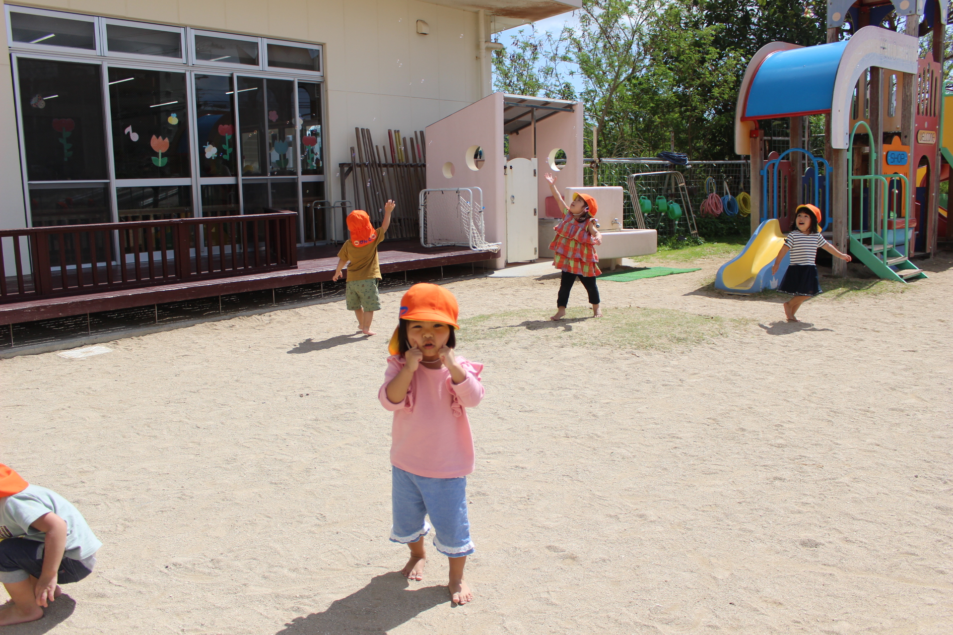 先生たちが作ったシャボン玉を追いかけて楽しそうです。(*^-^*)