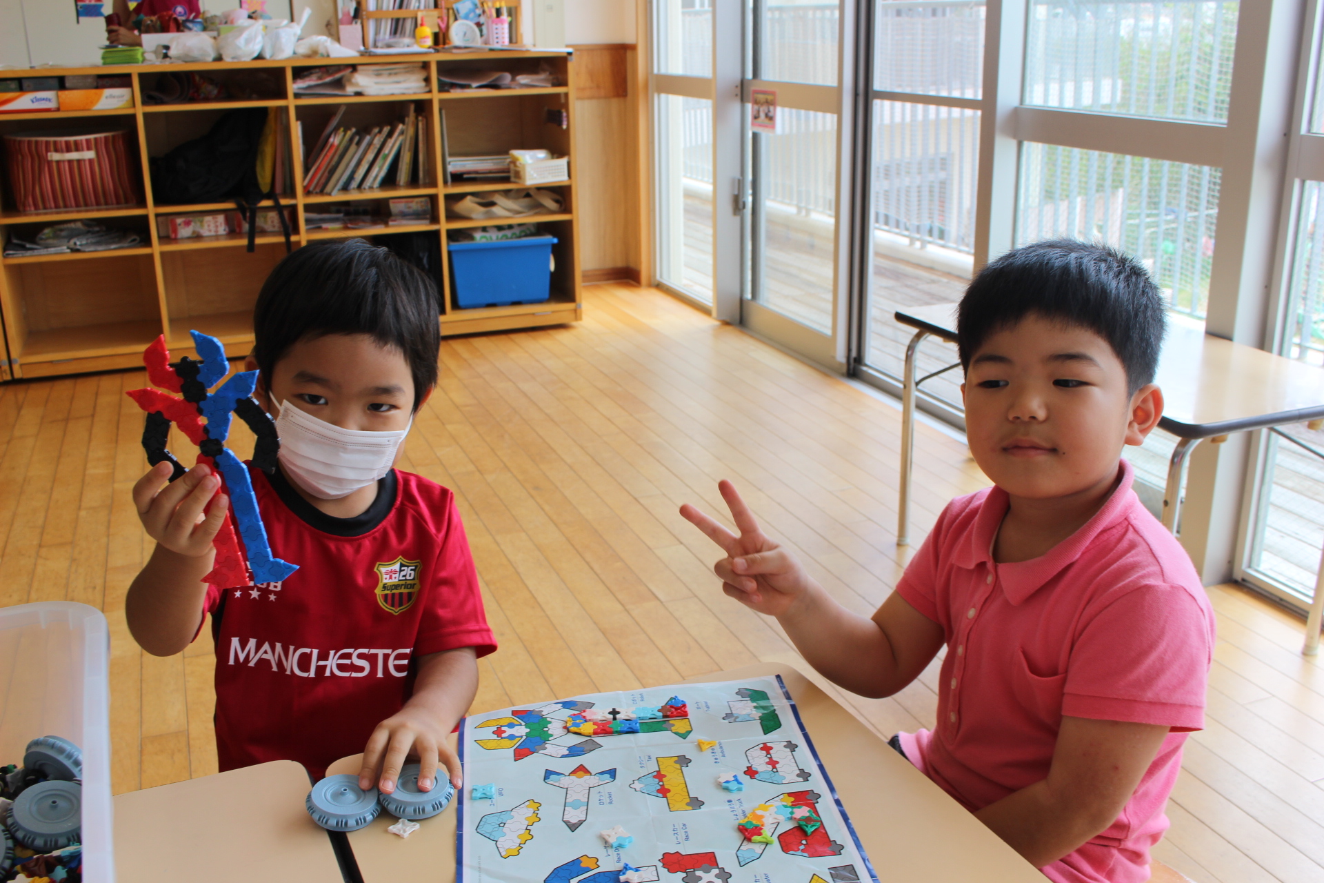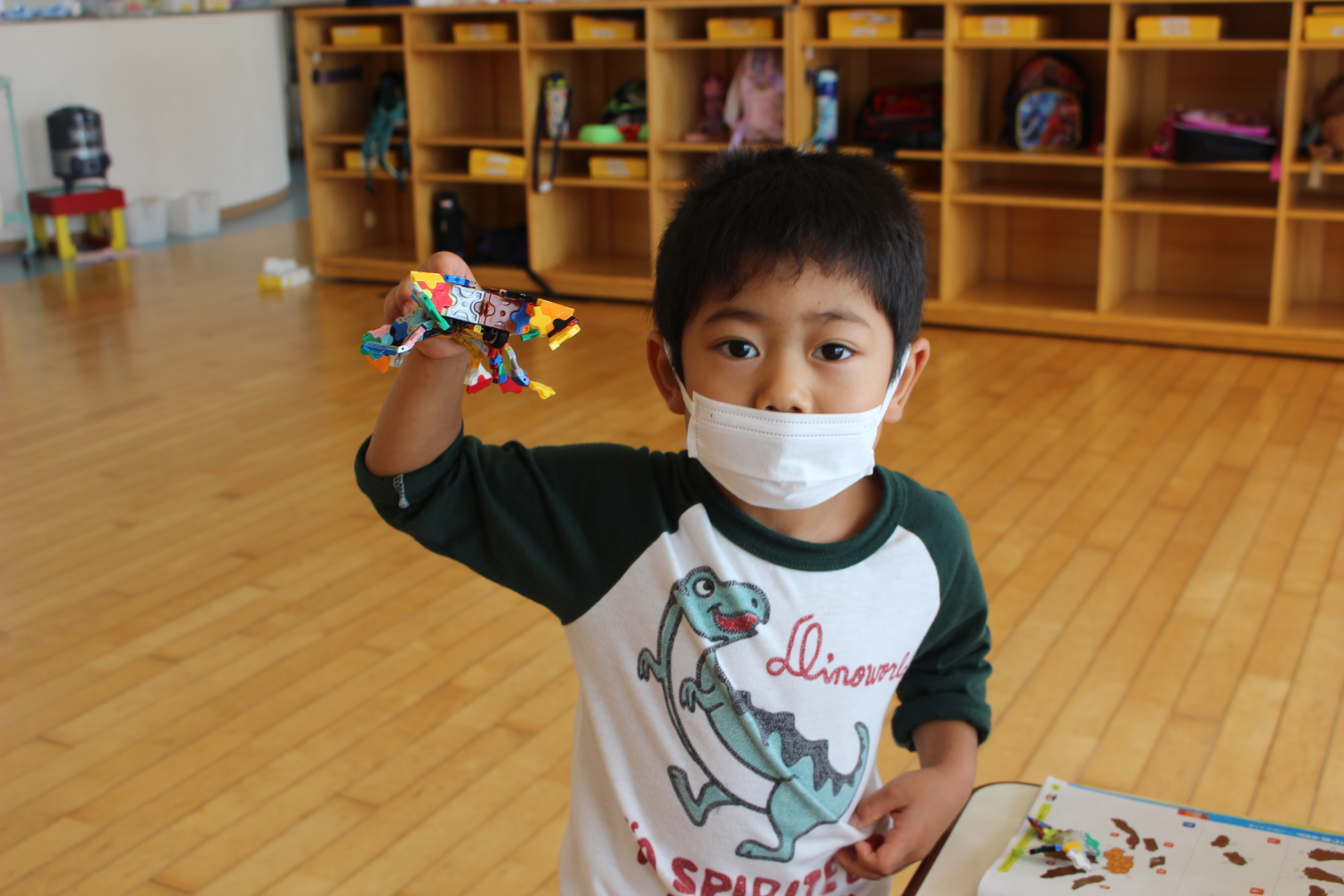 好きな種類のブロック玩具を使い、形にして楽しんでます。