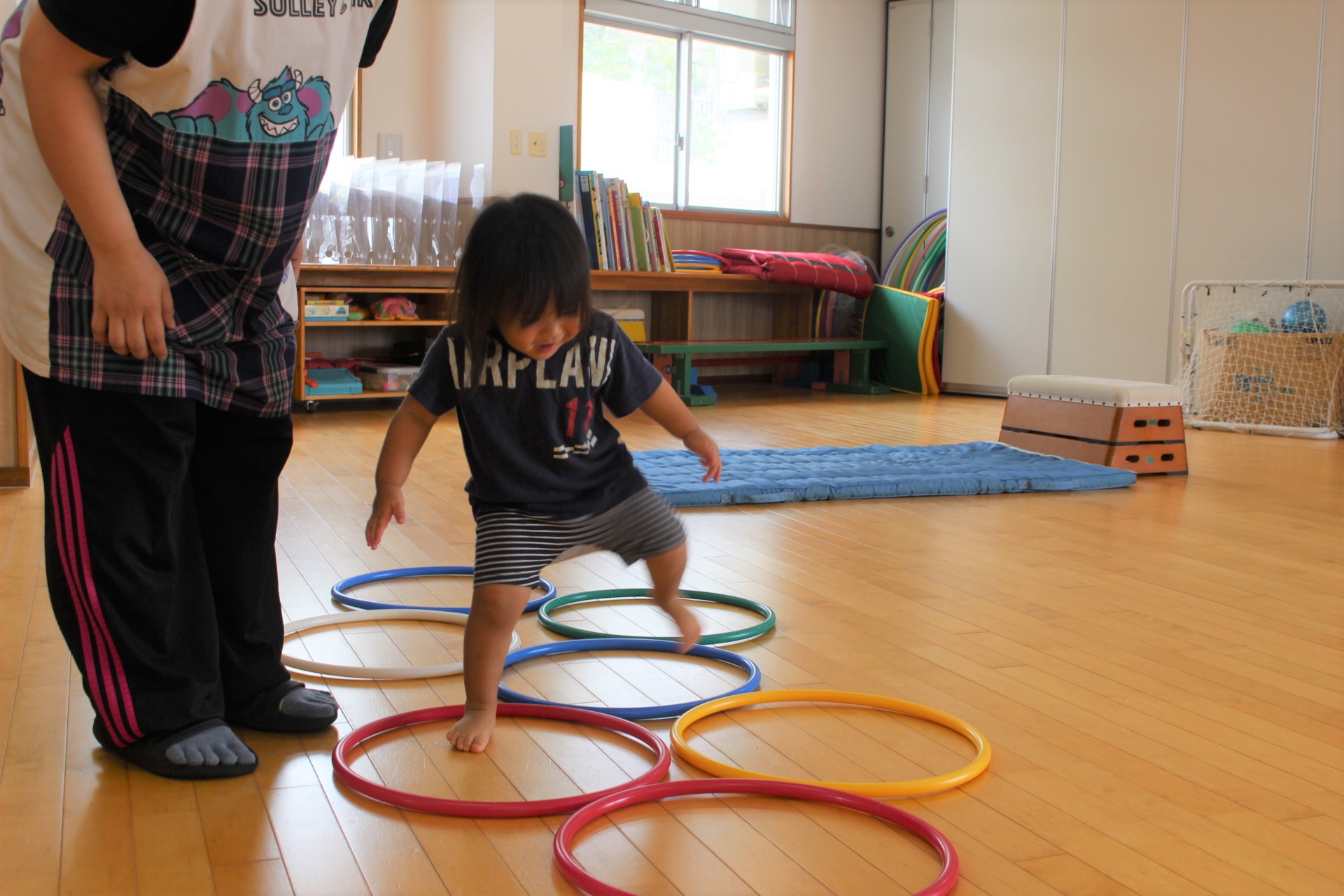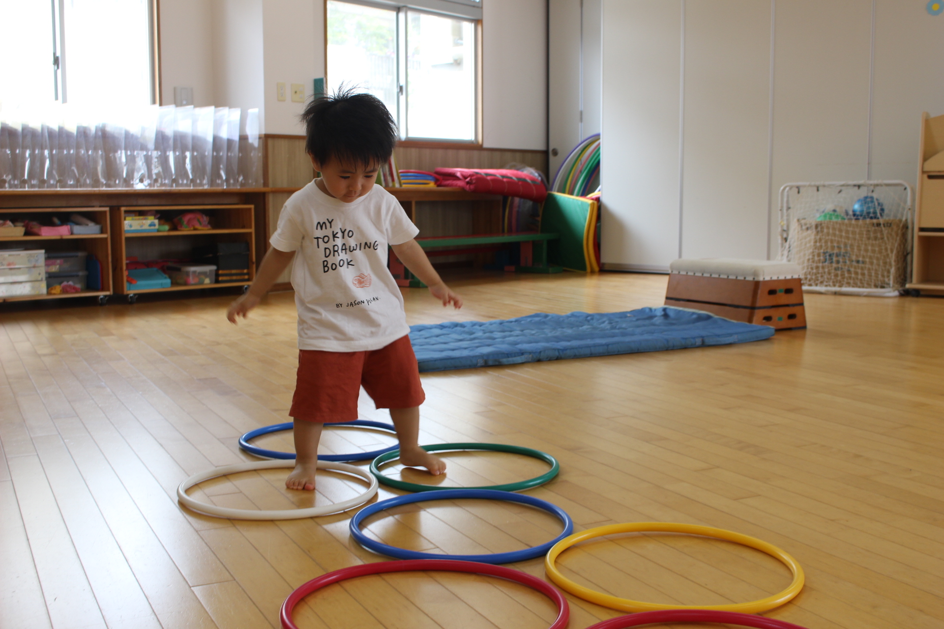 グー・パーと足を閉じたり開いたり!子ども達の動きが可愛いです(*^^*)