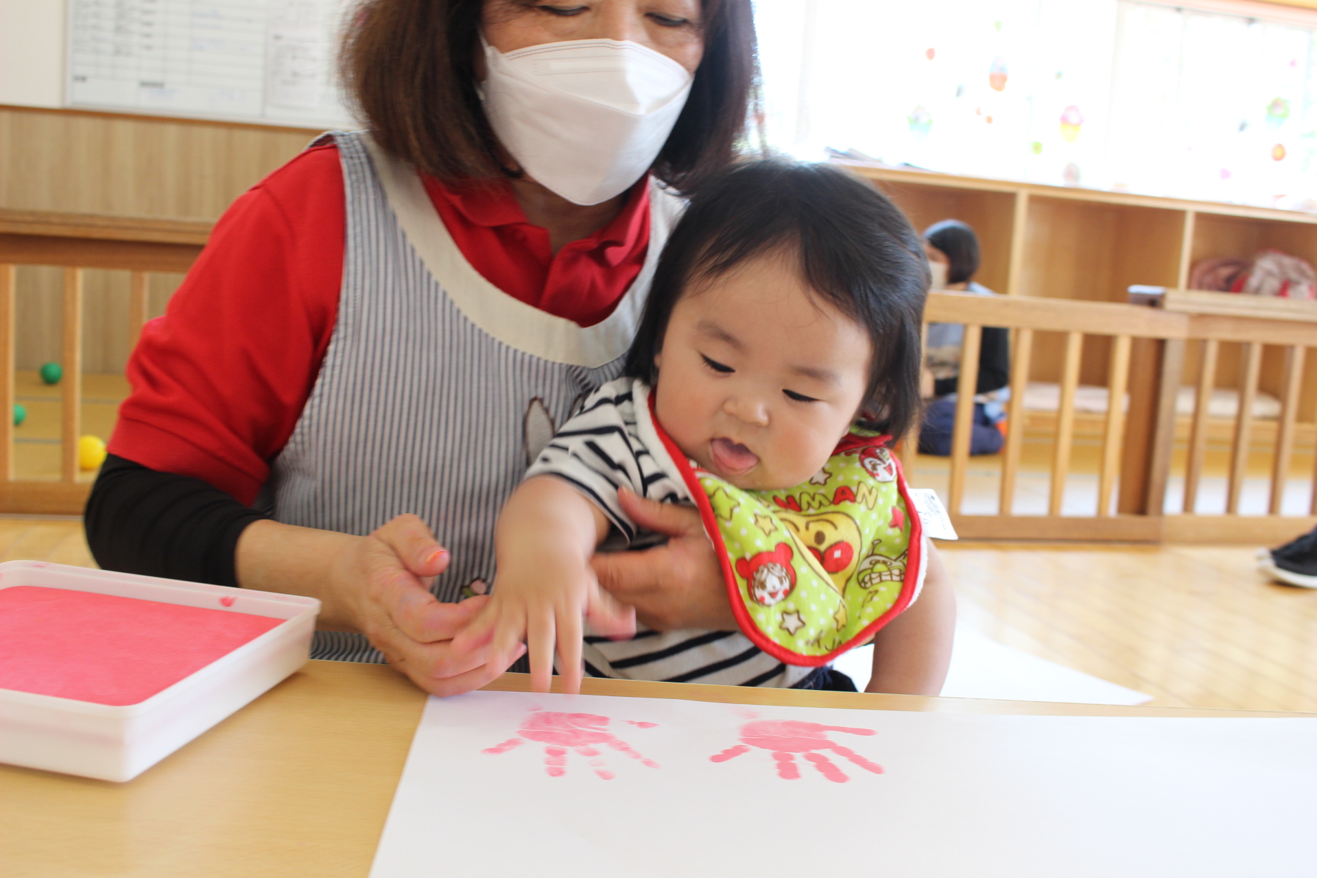 さくら組はお部屋でおもちゃと手形スタンプ(*^-^*)