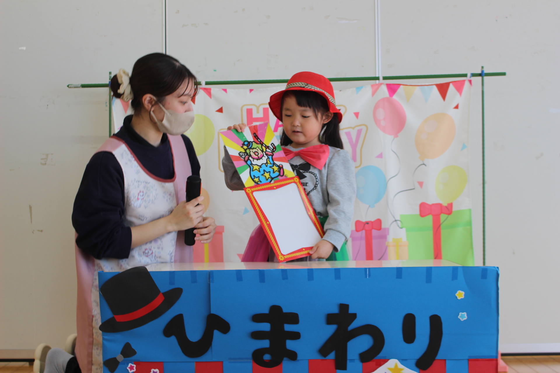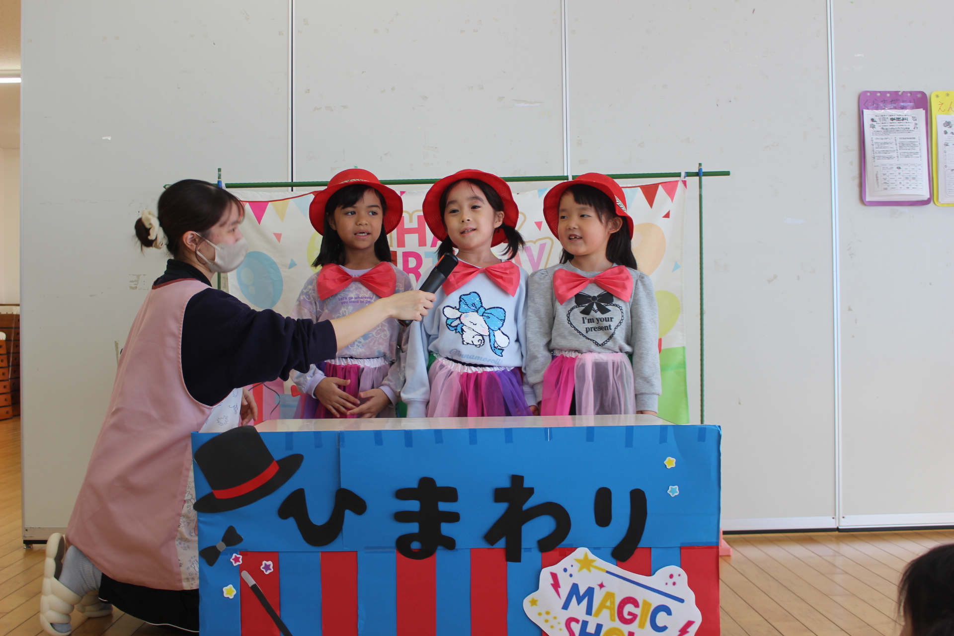 みんなでお誕生日のお友だちをお祝いした後は、ひまわり組の3人のマジシャンがマジックを披露してくれました⭐